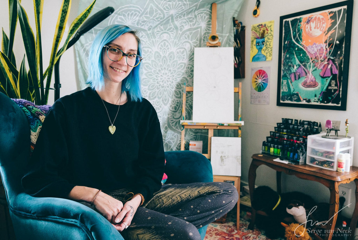 Using bold, bright colors & precise linework - this artists' work transports you to a new realm, inviting viewers to a creative reprieve, where one can explore & grow.