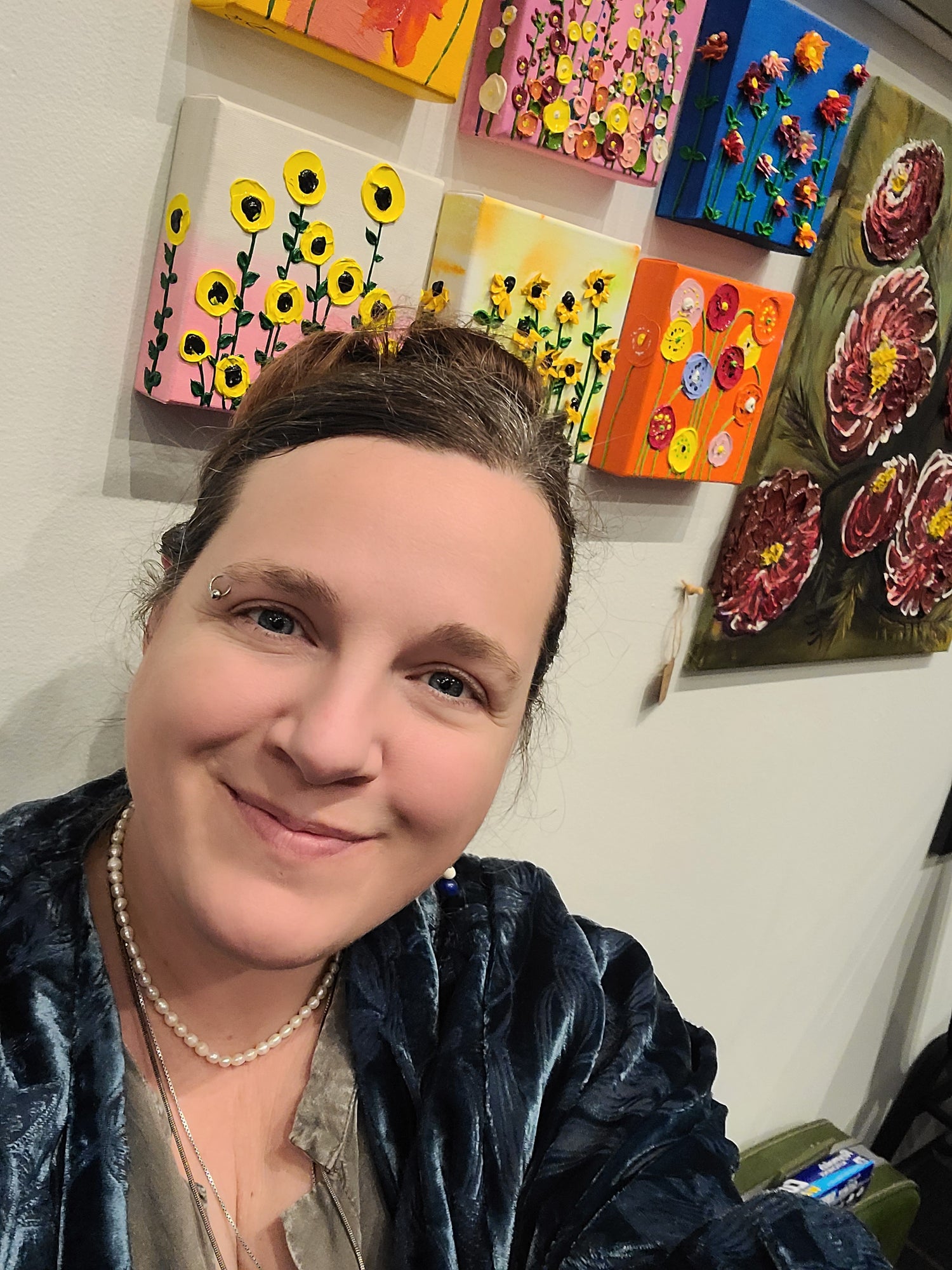 I love making art and learning to make different art. Right now I'm hooked on heavy texture acrylic and bold color. Making pieces that are bright and thick.